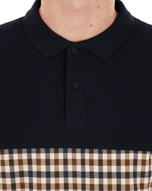 Aquascutum Iconic Club Check Insert Polo Shirt Navy
