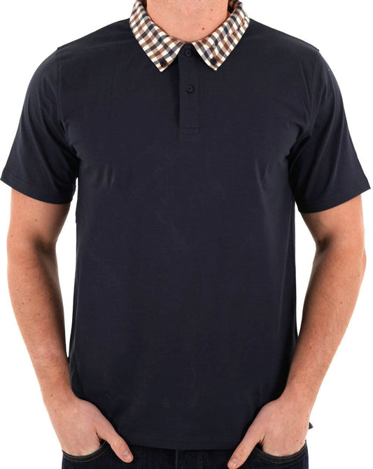 Aquascutum Club Check Collar Polo Navy