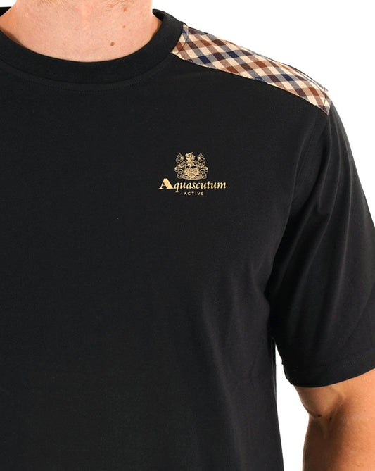 Aquascutum Check Shoulder T-shirt Black
