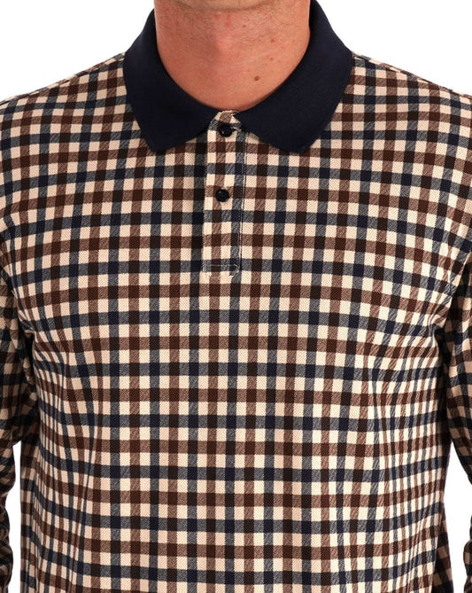 Aquascutum Iconic Club Check LS Polo Navy