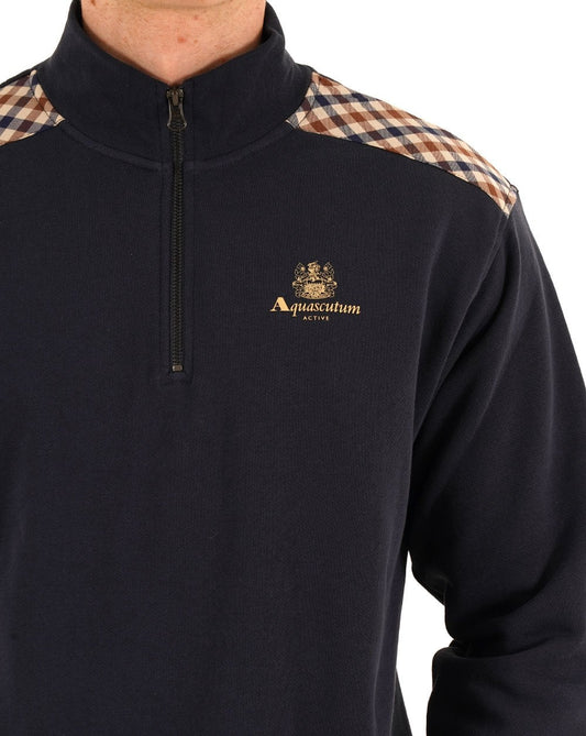 Aquascutum Check Shoulder Quarter Zip Navy
