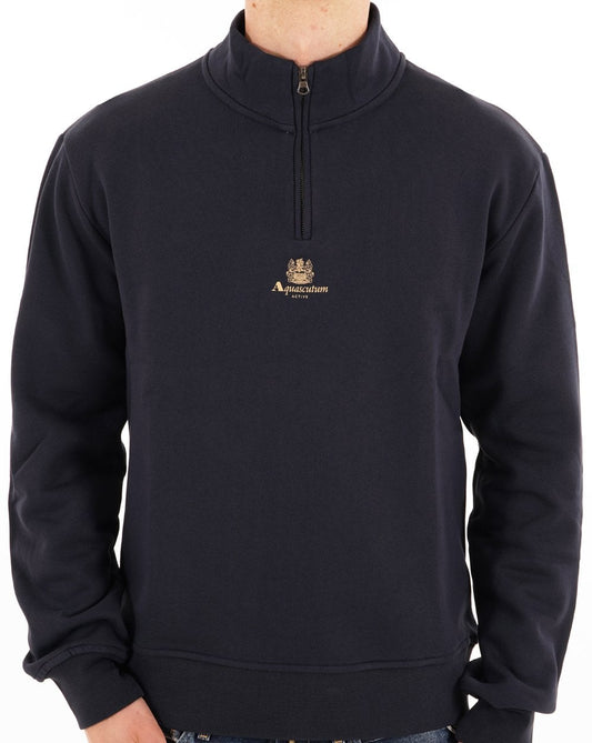 Aquascutum Logo Quarter Zip Fleece Navy