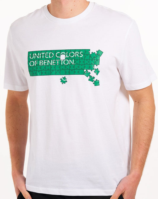 Benetton Jigsaw Logo T Shirt White/Green