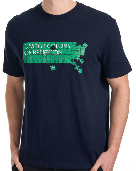 Benetton Jigsaw Logo T Shirt Navy/Green
