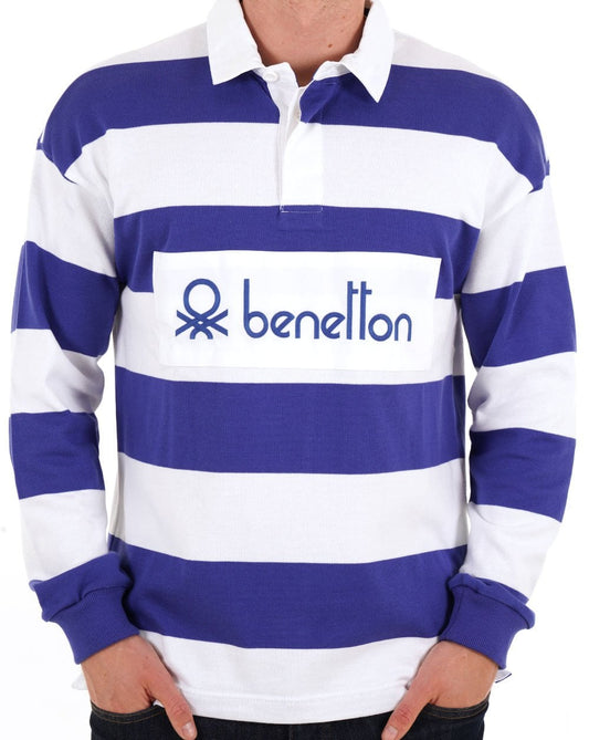 Benetton Striped Rugby Shirt White/Blue