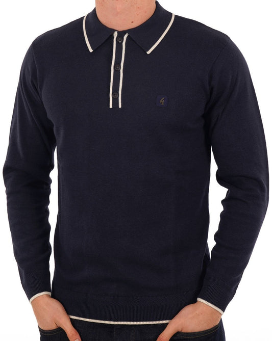 Gabicci Vintage Soda Knit LS Polo Navy Red