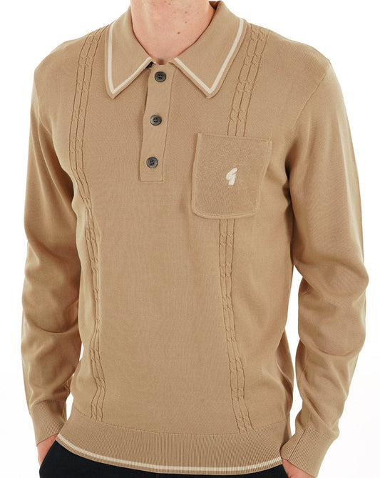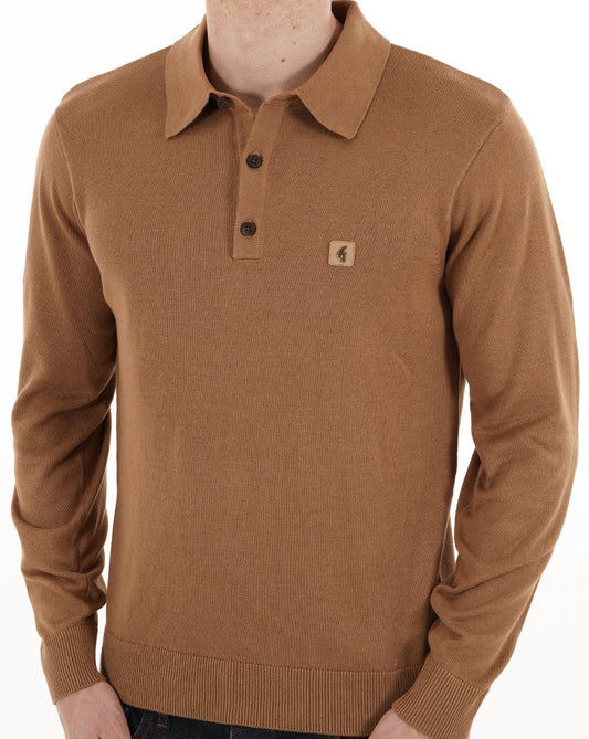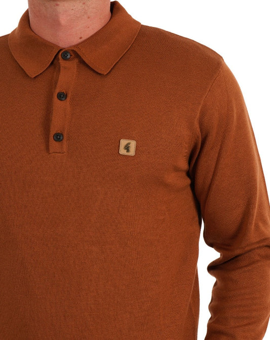 Gabicci Vintage Francesco LS Knitted Polo Walnut