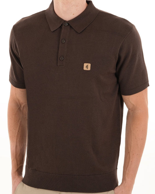 Gabicci Vintage Jackson Knit Polo DK Brown