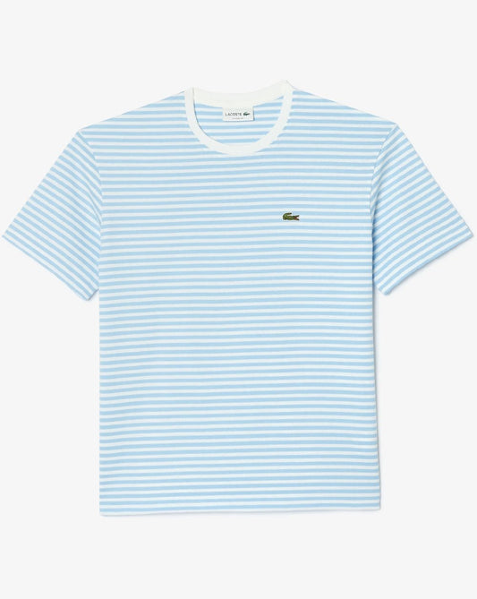 Lacoste Heavy Cotton Striped T Shirt White/Sky Blue