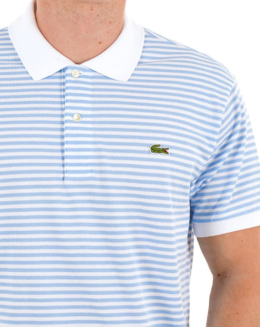 Lacoste Fine Stripe Polo Shirt White/Sky Blue