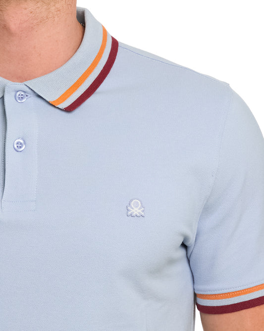 Benetton Maglia Tipped Polo Sky/Orange/Red