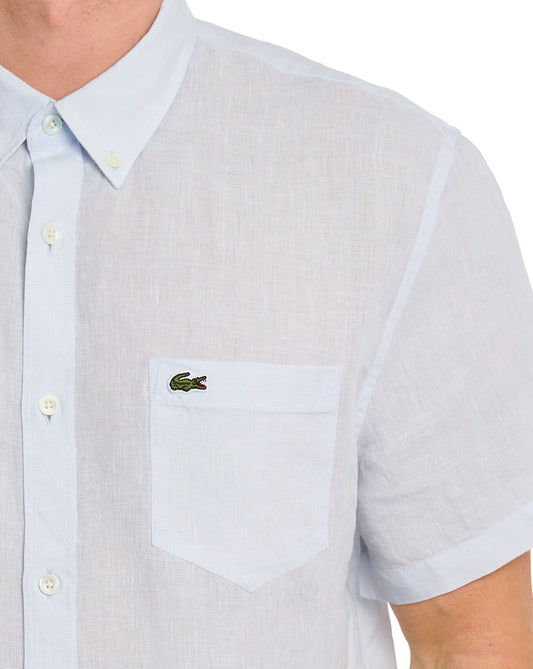 Lacoste Short Sleeve Linen Shirt Light Blue
