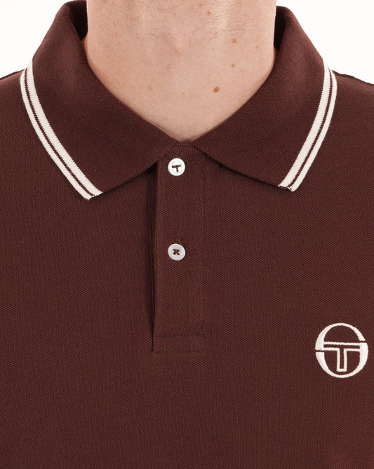 Sergio Tacchini Tipped Long Sleeve Polo Shirt Dark Brown