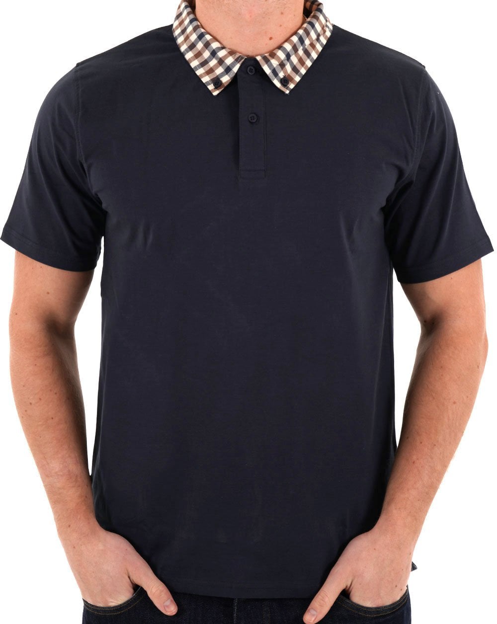 - Aquascutum Supima Club Check Collar Polo Navy
