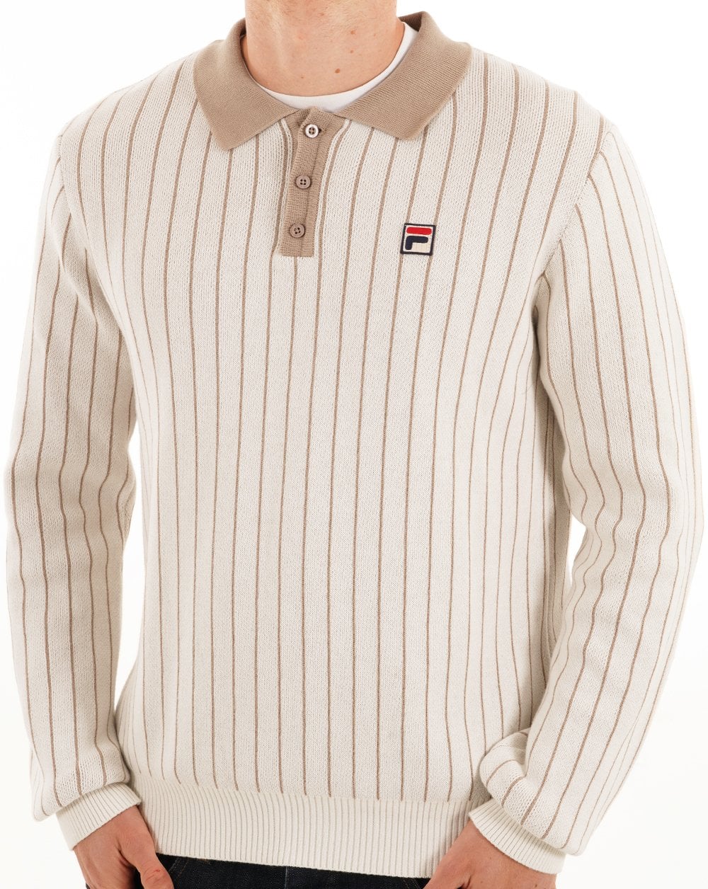 - Fila Vintage Kobe Long Sleeve Knit Polo Gardenia/Stone