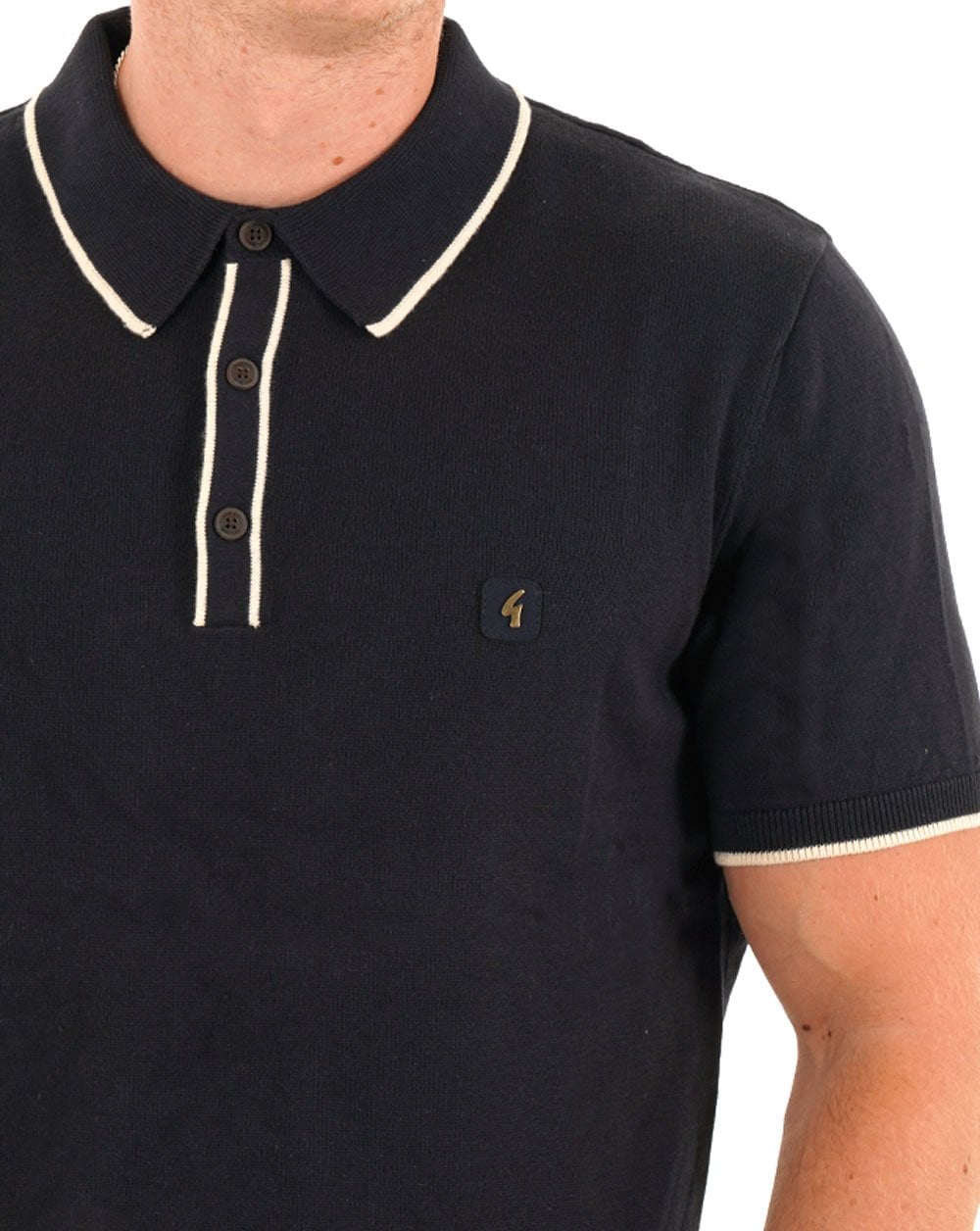 - Gabicci Vintage Lineker Knitted Polo in Navy