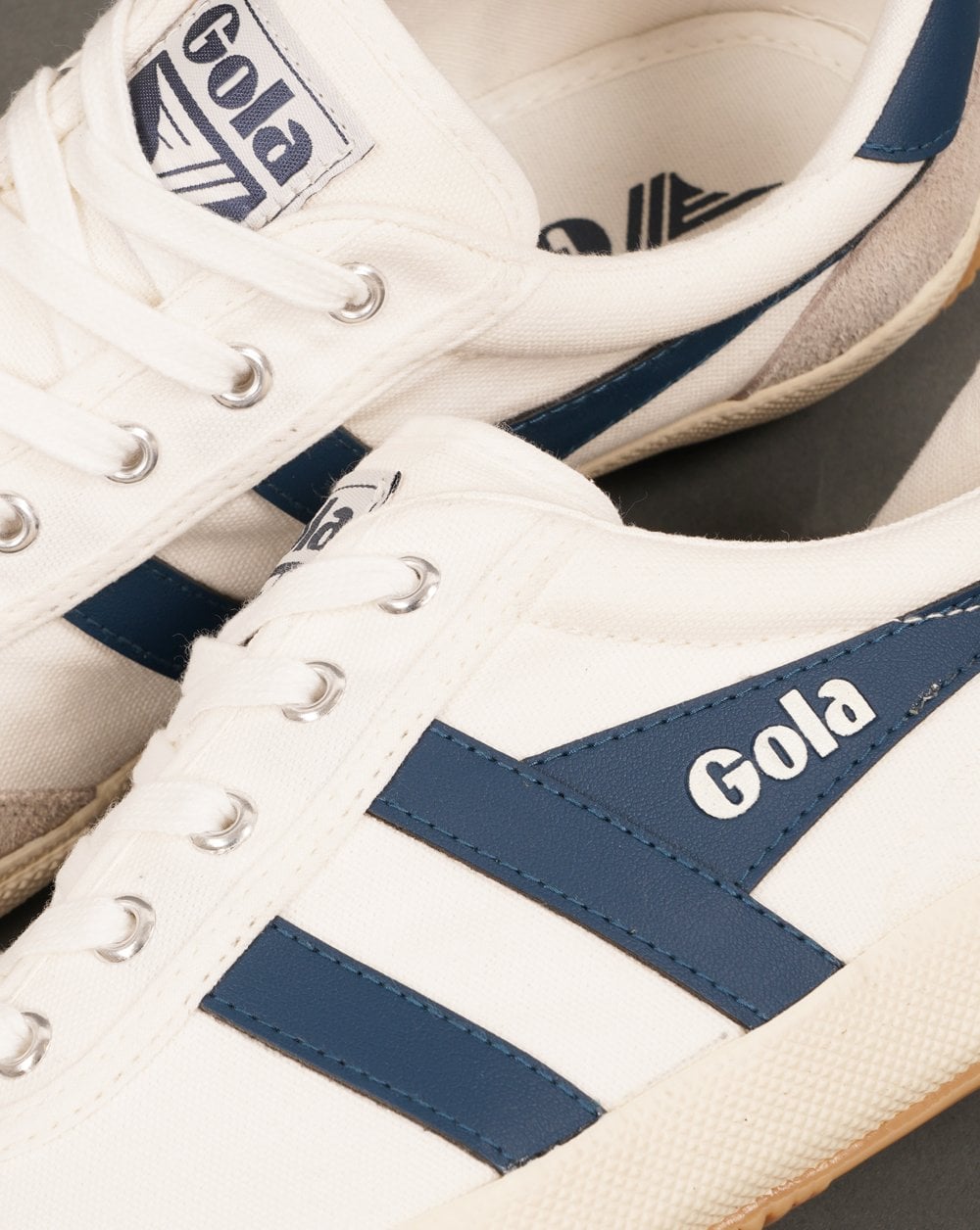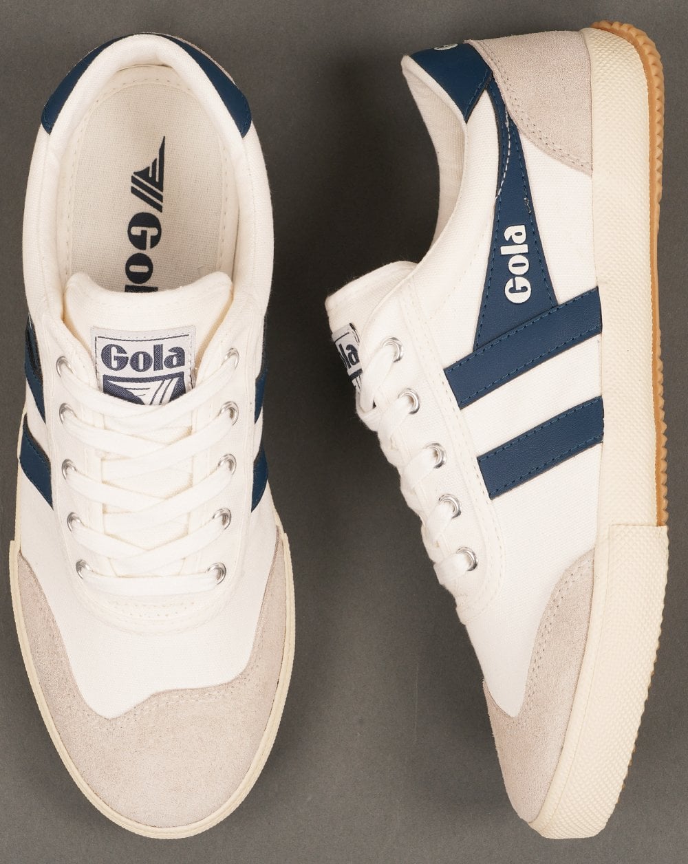 An original plimsoll design from Gola’s archives, The Badminton is relaunched this season with the same silhouette as Gola’s ‘70s namesake original. Adapted to have a more fashion focus, Gola Badminton stays true to roots with its lightweight and flexible outsole. This men’s sleek off white canvas trainer with Baltic blue wingflash branding is destined to be a footwear classic.