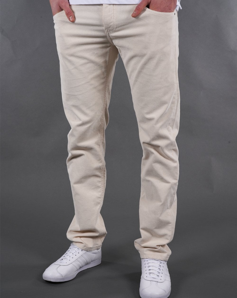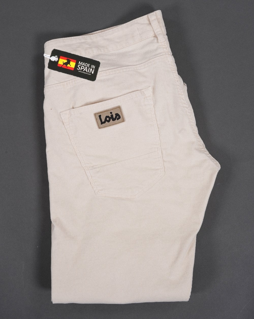 Lois and 80s Casual Classics introduce fresh needle cords in a natural off white. A proper old skool look for the modern day wearer, these Lois needle cords are made in Spain, premium and certainly look the part with the 5 pocket details and the all important Lois Bull branding.