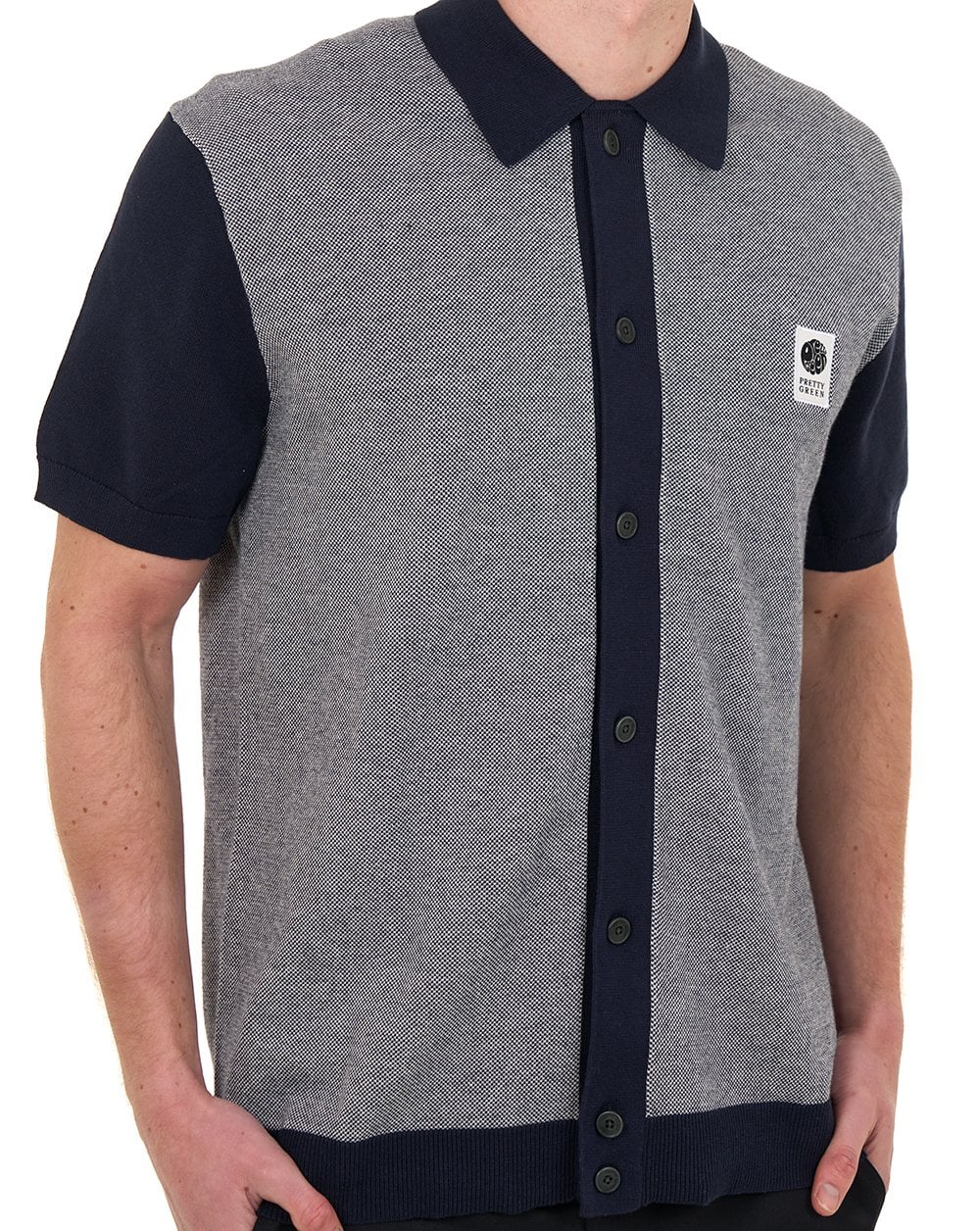 - Pretty Green Roxy Knit Short Sleeve Shirt Grey/Navy