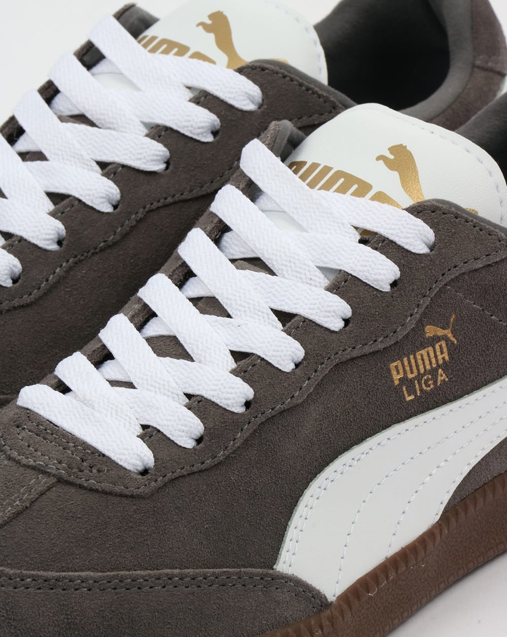 This version of the Puma Liga shoe comes in Steel Grey with white Puma branding stripe along with the gum sole unit that certainly looks the part and all contrasts well.