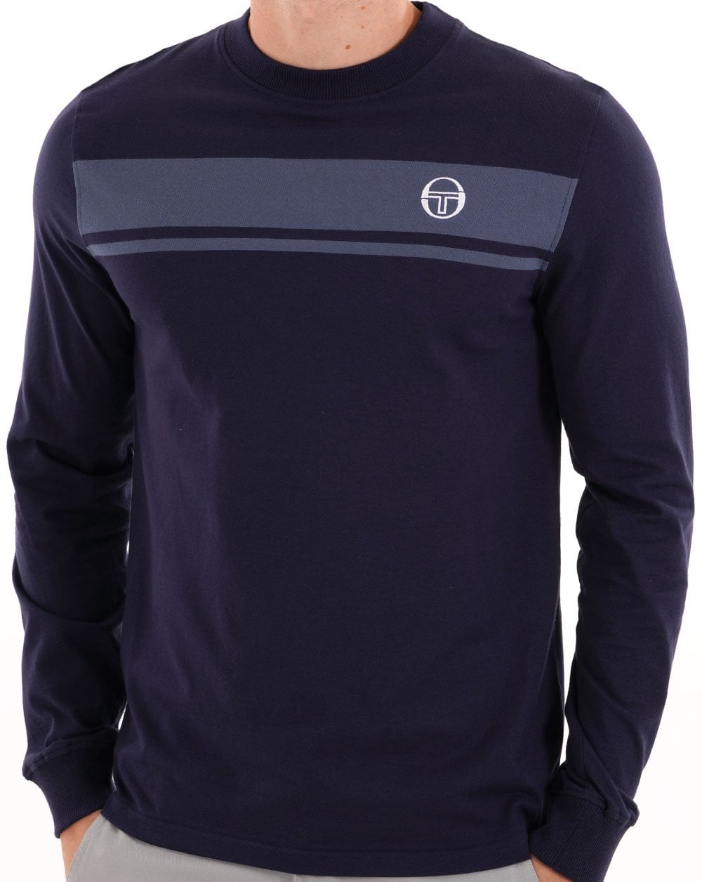 - Sergio Tacchini Masters Long Sleeve T Shirt Navy Blue/Vintage Indigo