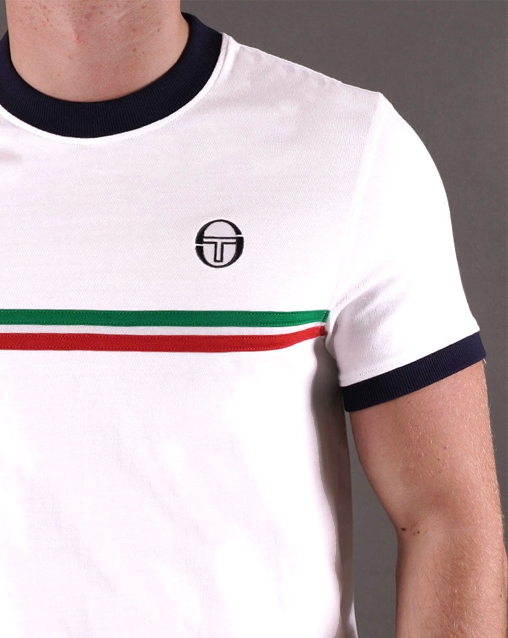 - Sergio Tacchini Supermac T Shirt White/Navy/Italia