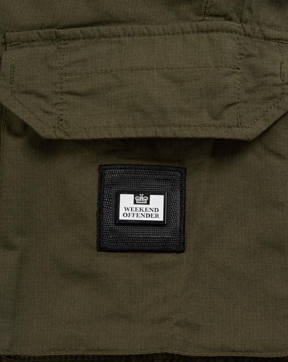 - Weekend Offender Metal square logo badge on left pocket