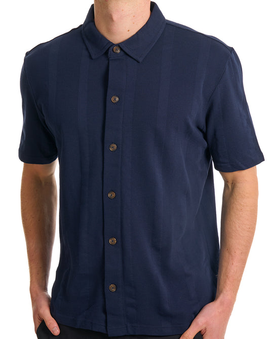 Ben Sherman Vertical Textured Pique Shirt Navy